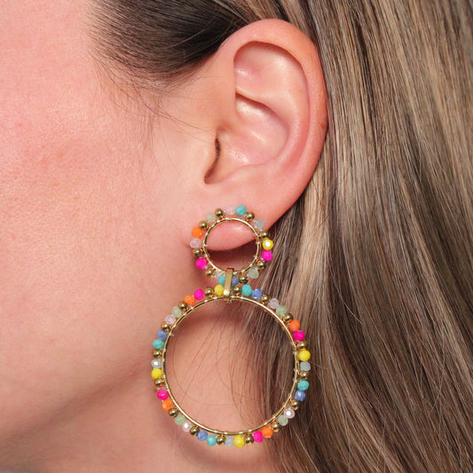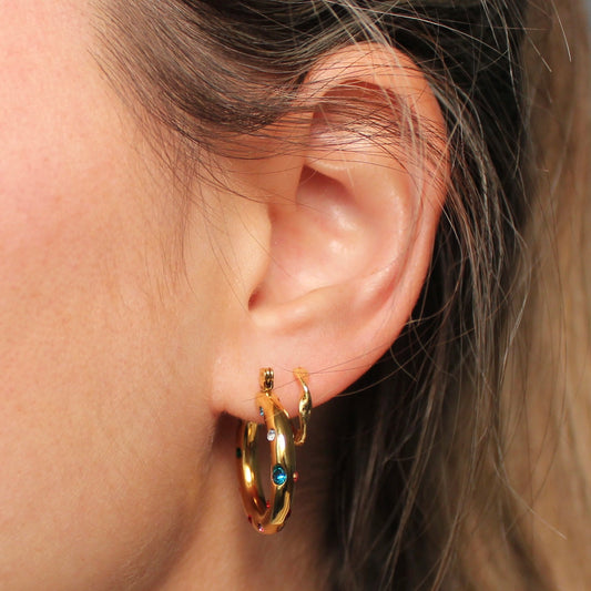 • Gouden hoops met gekleurde steentjes